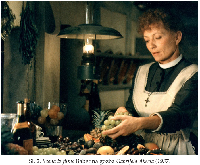 Dobitnik Oskara za strani film 1987. godine, danska Babetina gozba (Babettes gaestebud) režisera Gabrijela Aksela, donosi priču s Bibi Anderson kao francuskom kuvaricom Babet Hersant, zaposlenom kod dviju starijih norveških sestara, koja će odlučiti da potroši cijeli dobitak na lutriji kako bi pripremila savršeni ručak za dvanaest osoba. Od namirnica, koje je naručila specijalno za tu priliku, Babet će pripremiti gozbu, pravo gastronomsko remek-djelo, koje će zauvijek promijeniti živote gostiju. Film je snimljen prema istoimenoj noveli Karen Bliksen iz 1952. godine. Kako u noveli, tako i u njenoj ekranizaciji, nedokučiva kuvarica iz Pariza Bebet uspijeva da oslobodi mještane svih stega u kojima oni okovani žive. To postiže raskošnom večerom koja predstavlja opozit postojećoj praksi ishrane lokalne zajednice. Riječ je o večeri koja otvara sva čula, prostor hedonizma u kome se junaci ove filmske priče odjednom zatiču i koja ih na začudan način oslobađa. Sudar skandinavske usoljene ribe i oleborda, guste čorbe od ražanog hljeba i piva i francuske supe od kornjače. Sudar dvije kulture i dvije zajednice kroz hranu i njeno posluživanje, upravo kuhinju i gastronomiju, postavlja se u centar priče, kao i spoznaja da bez pogleda u drugog nema suštinskog suočavanja sa sobom.